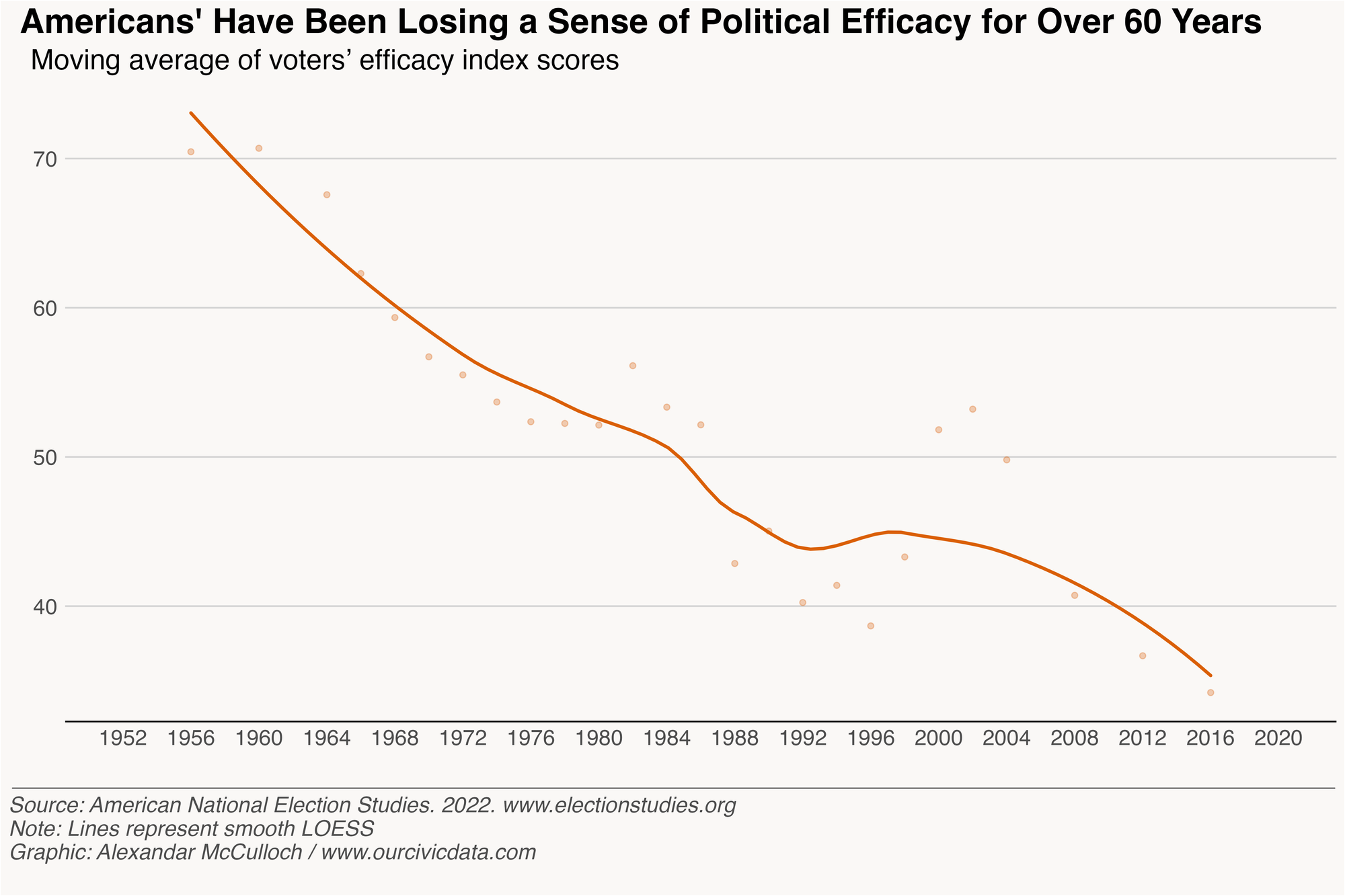 A decline in efficacy has welcomed a distrust of government and the institutions that represent its authority and an abandonment of America's credulous nature. All traits that engender attitudes that undermine a robust democratic system.