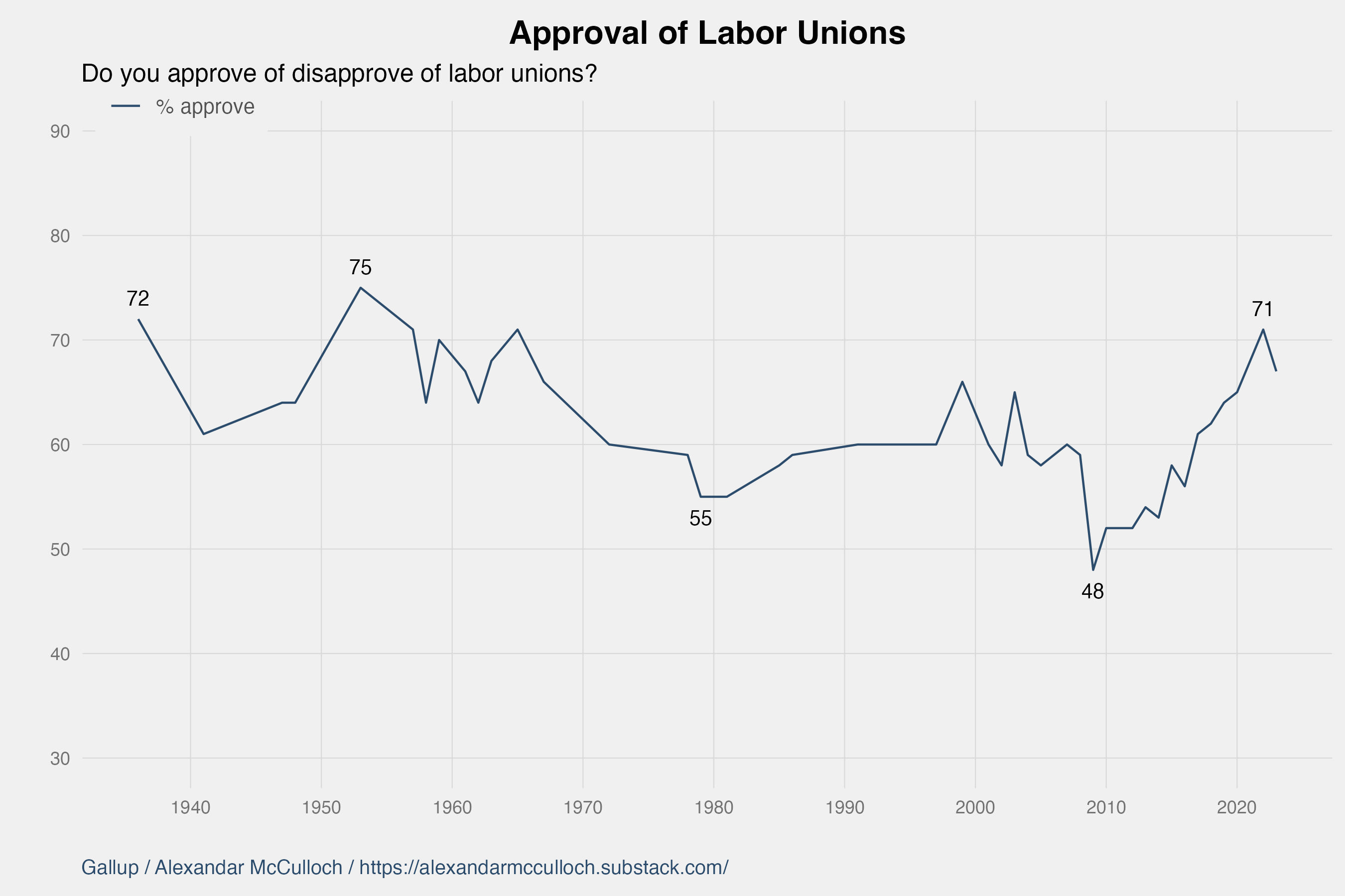Approval of Labor Unions has Steadily Increased for Over a Decade