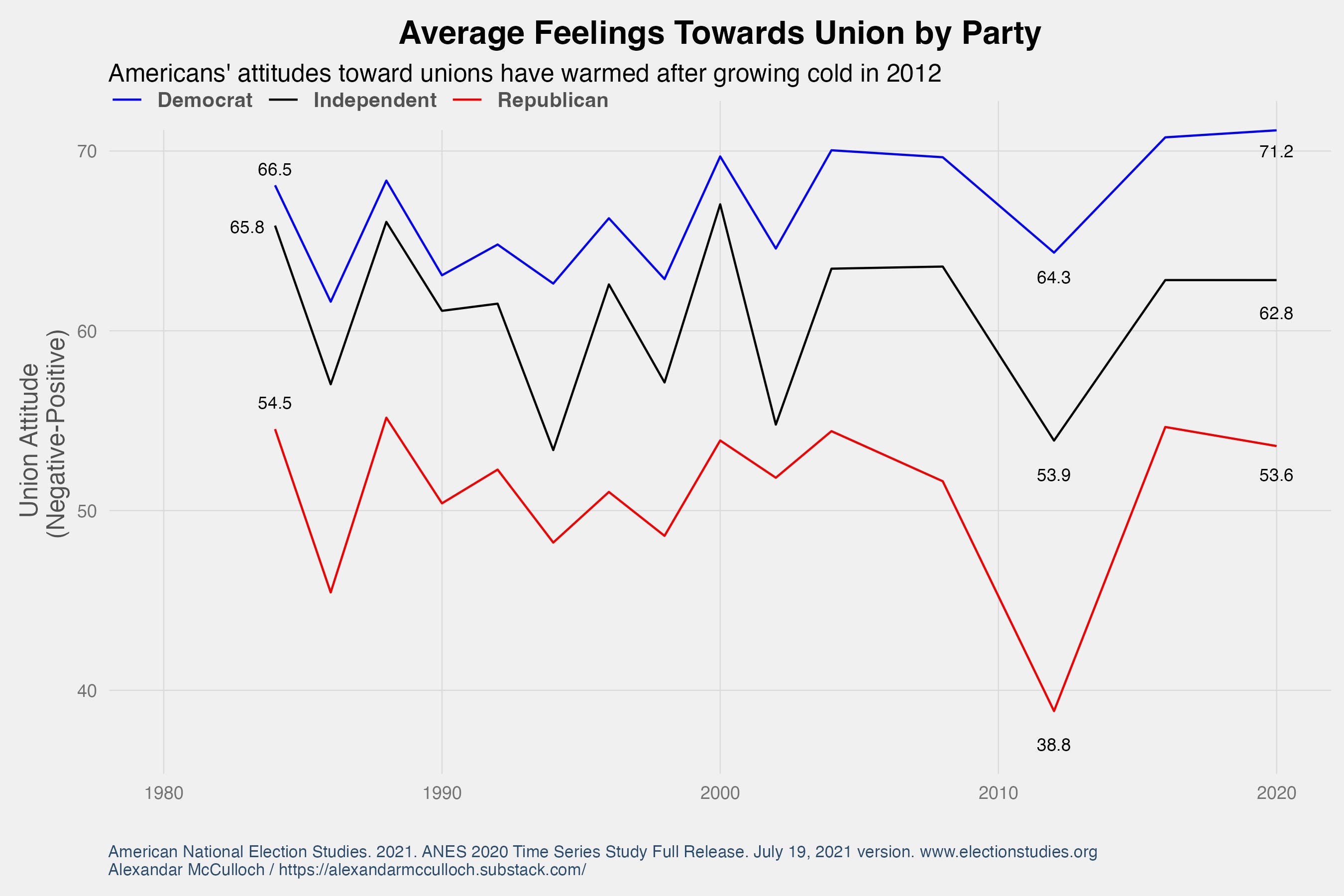 The Average Partisan Harbors Positive Sentiments Towards Labor Unions